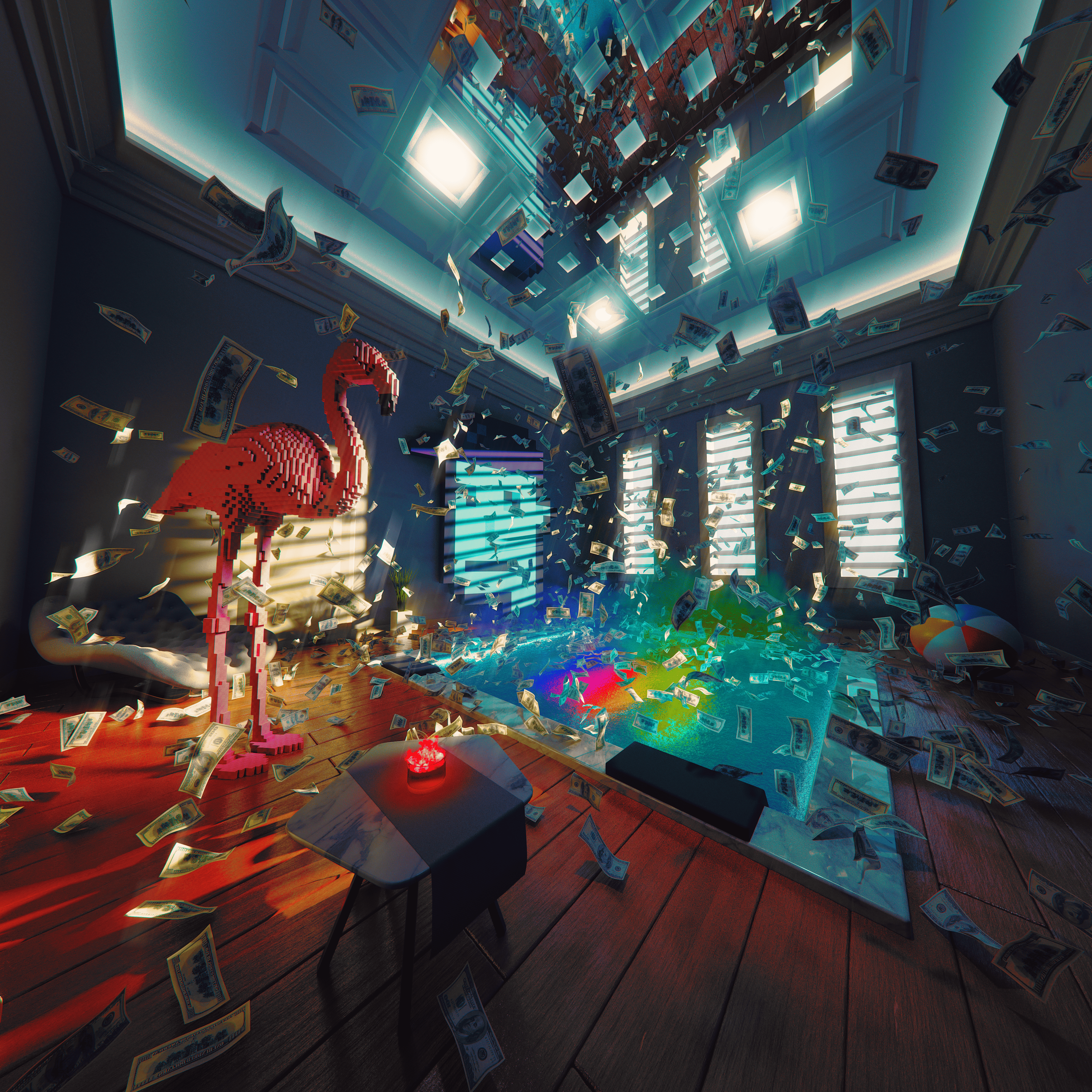 FLAMINGO DREAMS 4000 x 4000 Bathe in squiggles, savor a fiery wine, or enjoy the company of extraterrestrials and exotic birds.